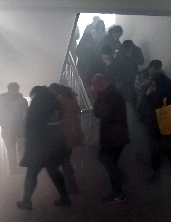 消防通道烟雾逃离演习
